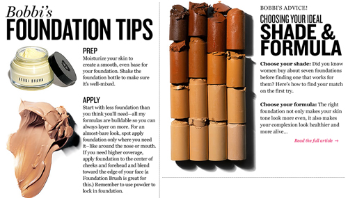 Fazendo meu trabalho de conclusão de curso, “fui obrigada” a fuçar em alguns sites de marcas de maquiagem como o da Bobbi Brown. Por lá achei muitas, mas muitas informações incríveis e básicas, que vão desde como aplicar base da maneira correta até como preencher as sobrancelhas. Eu particularmente adoro ver vídeos de profissionais dando dicas e mostrando suas técnicas, porque mesmo que haja uma “regra geral” para aplicação e uso de produtos, cada um tem um jeito particular de executar a mesma tarefa.