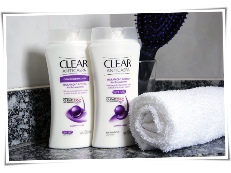 Foi então que eu recebi da Unilever o shampoo e condicionador Clear Hidratação Intensa para Cabelos Secos. Sim! Cabelos secos como os meus. Yay! Claro que as expectativas foram muitas, mas o que eu realmente queria saber é: será que ele seria capaz de tratar a caspa e ainda deixar meus cabelos bonitos e hidratados?